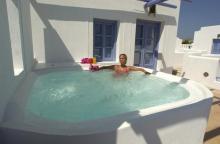Louis Studios Hotel offers tranquility & relaxation under the blue skies of Santorini. The hotel can be found 80 meters from the seashore and the quiet black sand beach of Agia Paraskevi. Cycladic architecture, spacious comfortable rooms, a hotel swimming pool with a separate Jacuzzi pool & more than reasonable room rates make Louis Studios an obvious choice for your next summer holiday.