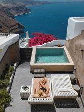 Aiming at a unique experience for the lovers of perfection, we created in Imerovigli Village, on the Caldera cliff, an exceptional residence with an endless, exquisite view to the Aegean sea and the world famous volcano, right next to the blue-domed church, the quintessential landmark of Santorini.