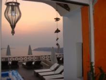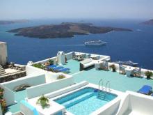 Traditionally Cycladic, with a small courtyard, garden statuettes, pockets of flowers, stone chequered paths & curved archways, this Santorini hotel is quite charming. Modest hotel rates coupled with easy access to Fira town center make Villa Alizea an obvious choice for economical & yet comfortable holidays on Santorini Island.