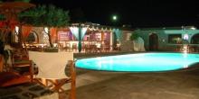 An organised beach 7 km far from the city of Mykonos. It has 17 rooms overlooking the beach and only a few steps away from it. The rooms have been refurbished with air conditioning, refrigerator, television and comfortably decorated. Descending to the beach you will meet Super Paradise Bar, open from morning till late evening. Serving cold coffees, cocktails, fresh juices and snacks. After 17:00 when the music gets louder, beverage and super hits lead to endless party.